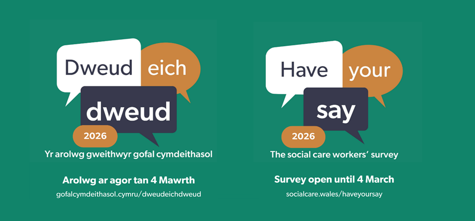 Rydym yn falch o gyhoeddi, fel tîm o ymchwilwyr o Brifysgol Caerdydd a’r Ganolfan Ymchwil Gofal Cymdeithasol i Oedolion (CARE), gan weithio mewn partneriaeth â Gofal Cymdeithasol Cymru a Fforwm Gofal Cymru, ein bod wedi lansio ‘Dweud Eich Dweud 2026: Arolwg Gweithwyr Gofal Cymdeithasol’. Mae’r arolwg hwn wedi’i gynllunio i gasglu lleisiau pawb sy’n gweithio ym maes gofal cymdeithasol ledled Cymru a rhoi cyfle iddynt rannu eu profiadau o weithio yn y sector gofal cymdeithasol.